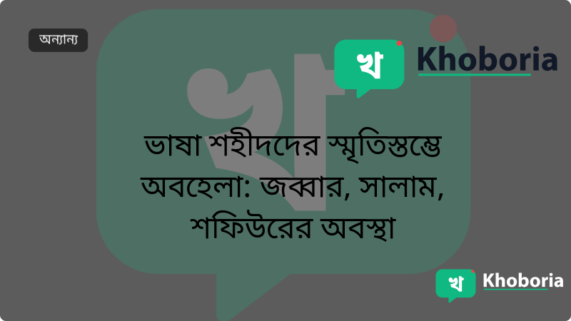 ভাষা আন্দোলনের ৭০ বছর পার হওয়ার পরেও শহীদ আবদুল জব্বার, আবদুস সালাম এবং শফিউর রহমানের স্মৃতিসৌধ ও সংগ্রহশালাগুলো যথাযথ যত্ন পায়নি। তিনজনের পরিবার ও সমর্থকরা দীর্ঘদিন ধরে সঠিক স্মারক গড়ে তোলার দাবি জানাচ্ছেন, তবে বর্তমান অবস্থা অবহেলার চিহ্ন বহন করে। এই পরিস্থিতি ভাষা আন্দোলনের ঐতিহাসিক স্মৃতি সংরক্ষণে বড় প্রশ্ন তুলেছে।